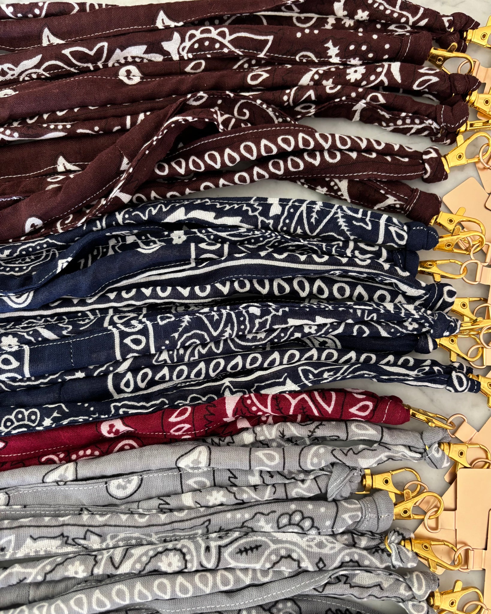 Chaque porte-téléphone est unique grâce à des découpes spécifiques du tissu bandana, pour un accessoire à la fois original et artisanal.