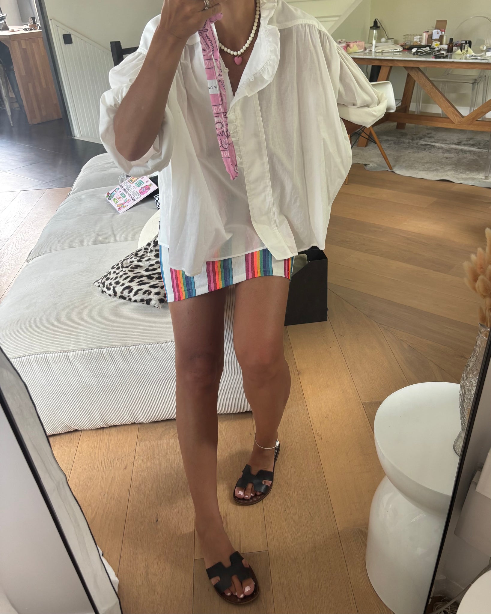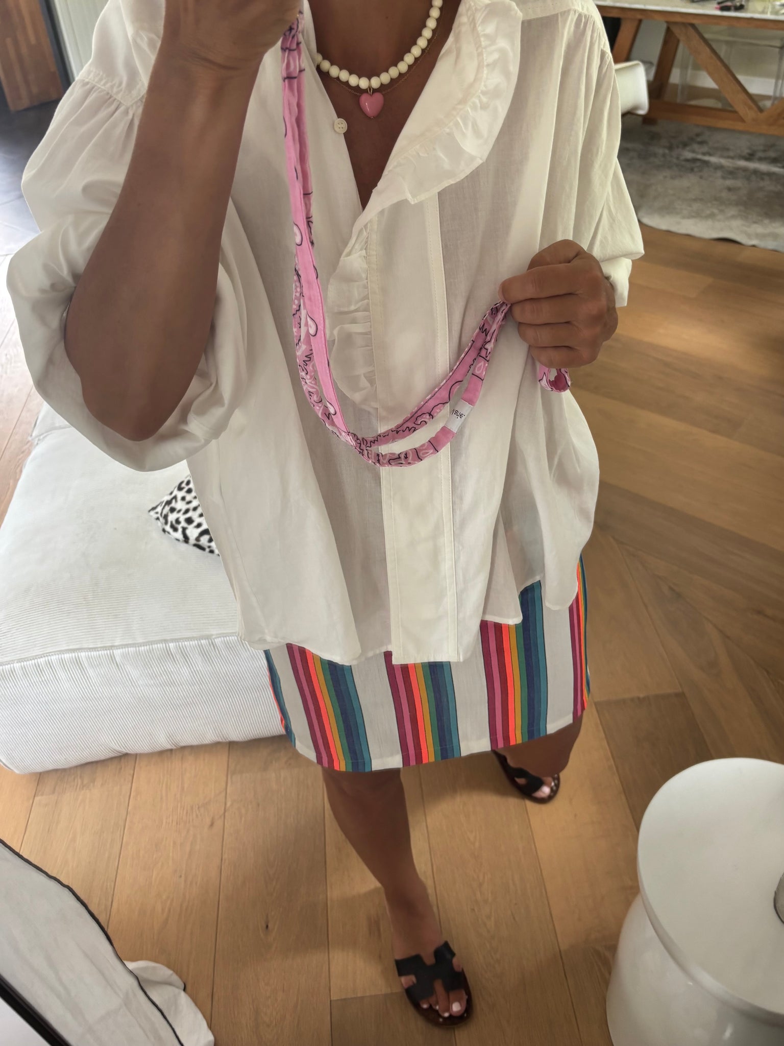 La Mini jupe Bonnie est passe partout, taille élastique, tissu MEXICO  qui lui donne un petit air bohème selon comment on l’accessoirise. Super facile à porter avec un bon tee blanc, une chemise ou un bon sweat!