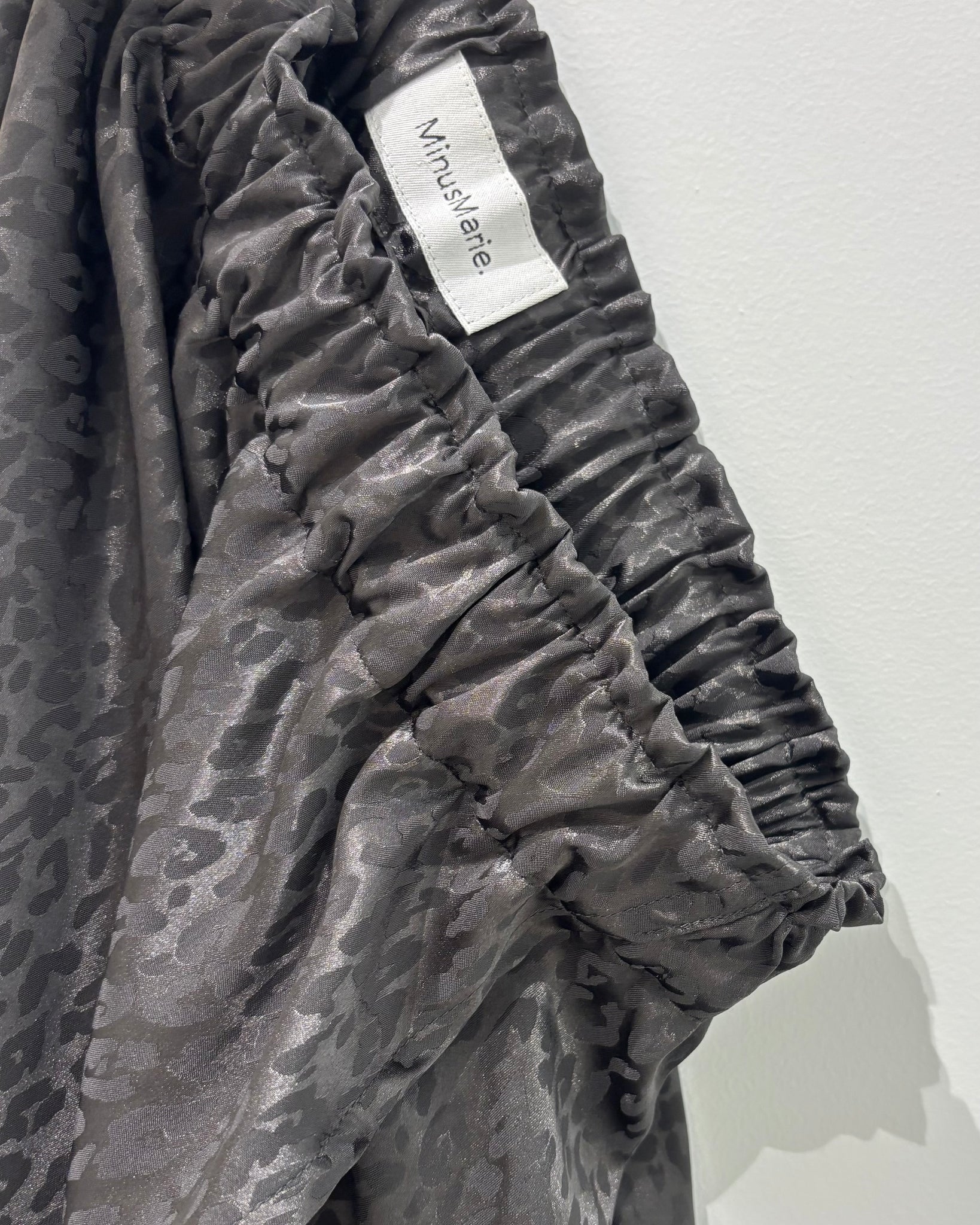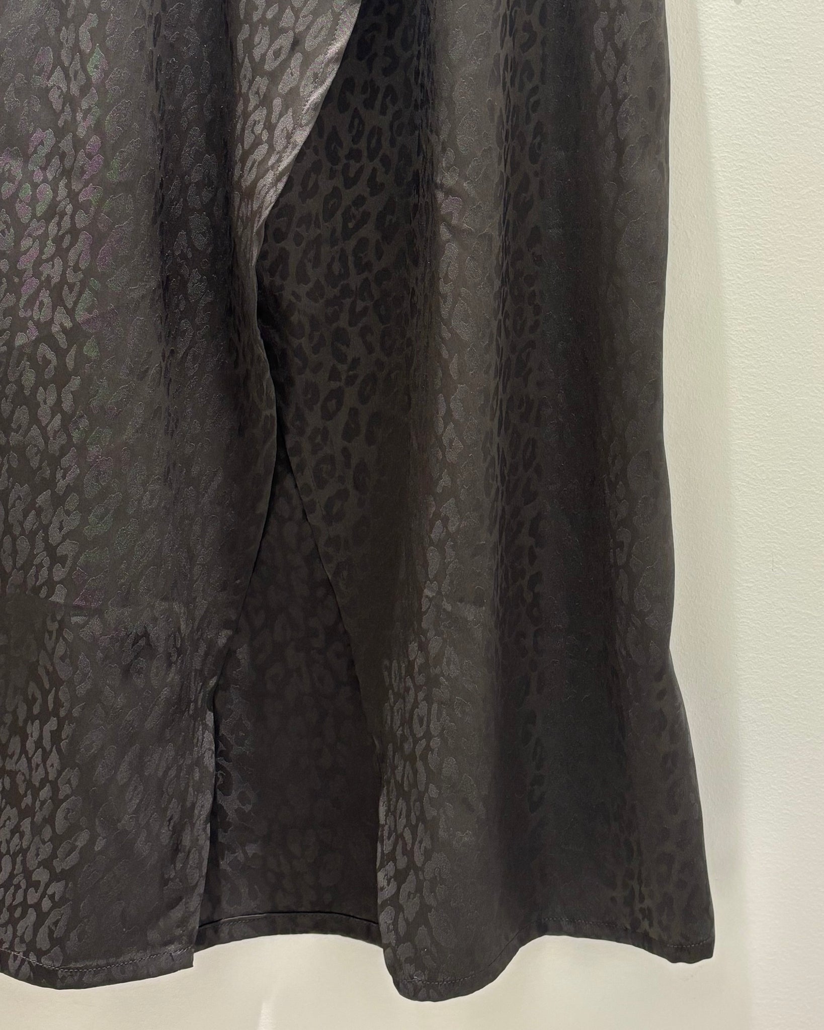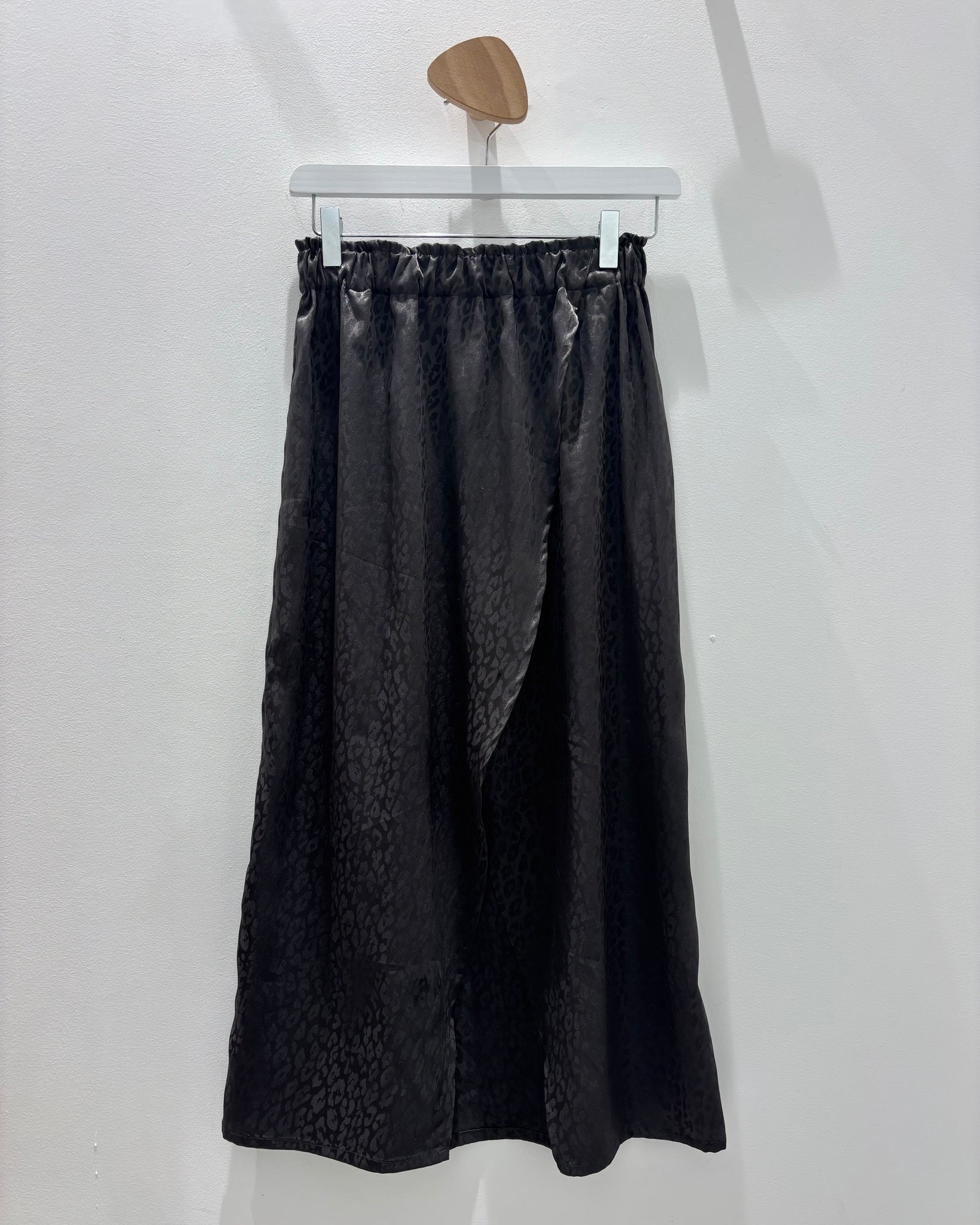 A porter avec un débardeur, un bon Tee-Shirt, un sweat, une grosse maille ou une jolie veste!!! Elle complétera votre vestiaire de saison avec ce tissu black délavé si chic au print léo ton sur ton que j’adore!